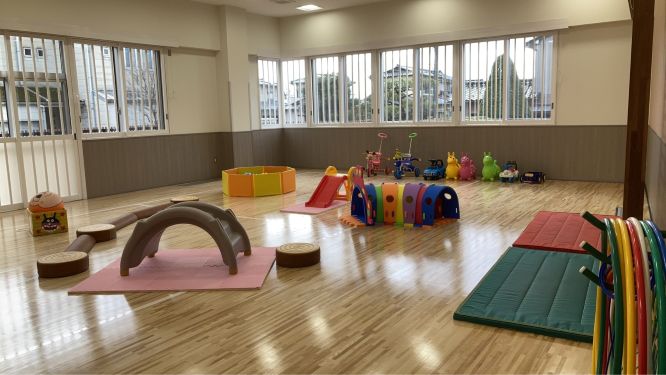 蜷川児童館は、令和8年3月2日に移転しました。新しい児童館はとっても明るく、赤ちゃんから小学生・中高生まで楽しく遊べる児童館です。広い遊戯室ではボール遊びやバドミントンができます。図書コーナーには絵本や児童書がたくさんあります。年齢別の乳幼児サークルや、季節に応じた楽しい行事も実施していますので、ぜひ遊びに来てください。